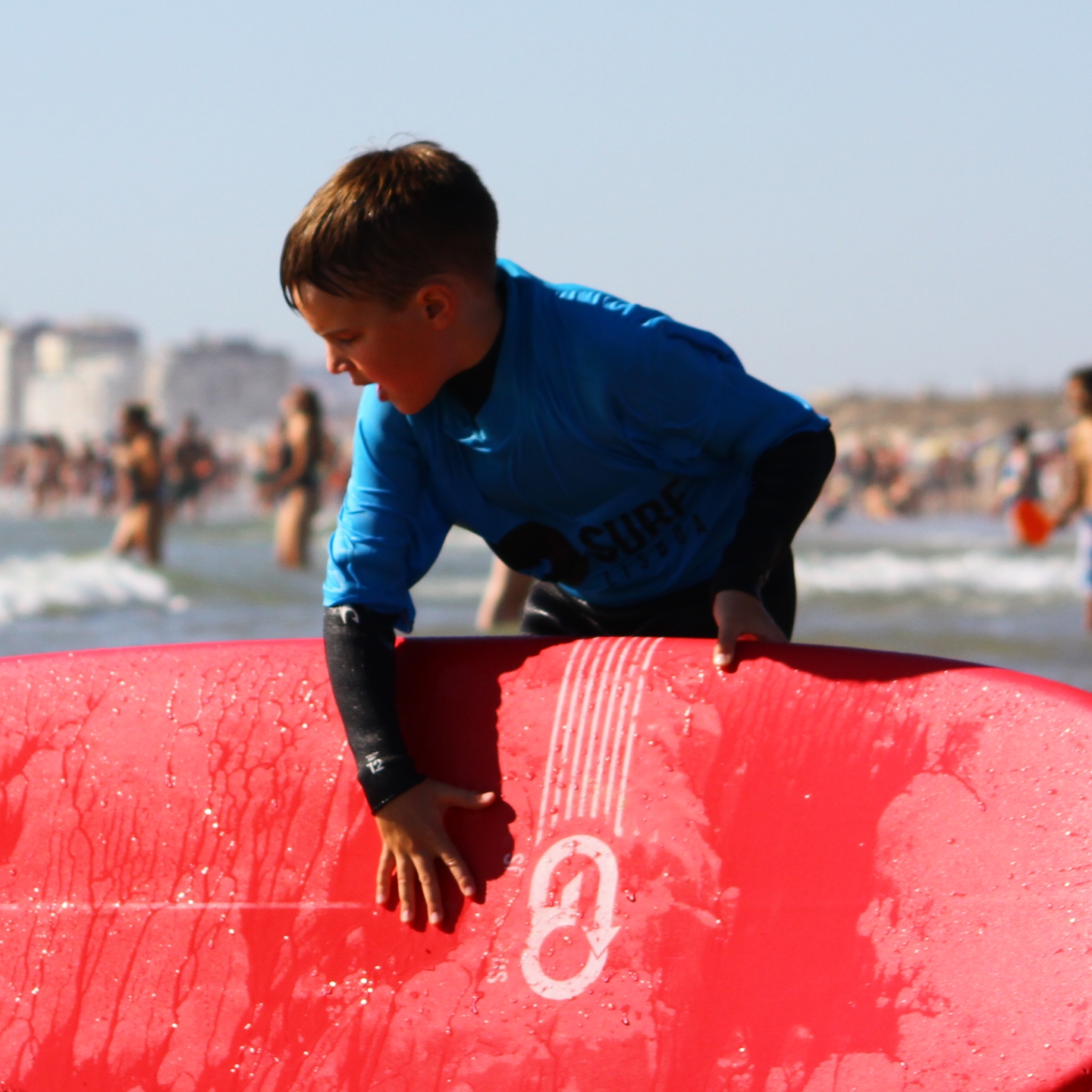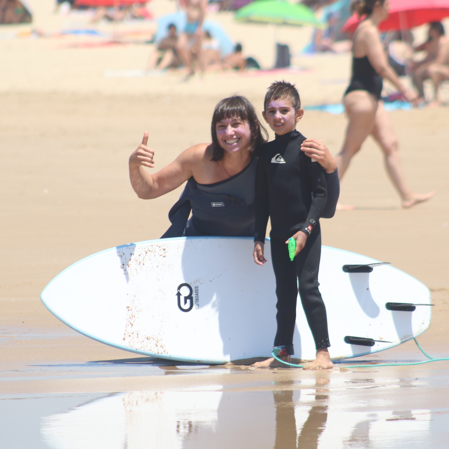Certificamo-nos que as crianças aproveitam o máximo possivel da aula, num ambiente seguro e divertido. Não te espantes se eles acabam por surfar melhor do que tu!